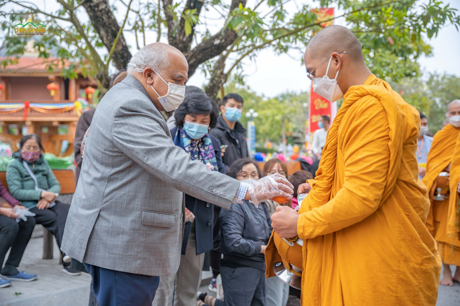 Phát biểu cảm xúc khi được tự tay sớt bát quý Thầy, ông Orlando Hernández Guillén chia sẻ: “Thực sự tôi cảm thấy mình rất may mắn vì được đến thăm chùa đúng dịp tại chùa diễn ra lễ sớt bát cúng dường chư Tăng và có cơ hội được cảm nhận và chia sẻ khoảnh khắc may mắn ngày hôm nay. Khi được sớt bát cúng dường chư Tăng, được cảm nhận không khí cũng như con người trong lúc sớt bát, tôi cảm thấy rất vui bởi nhiều người Việt Nam đều hướng về Phật Pháp”.