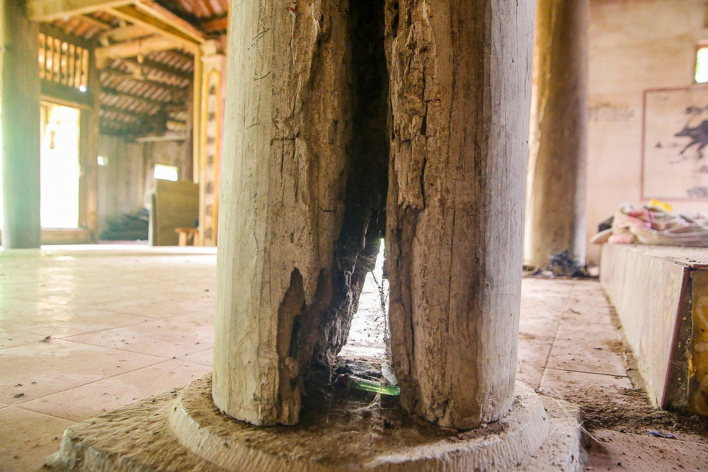 Các trụ gỗ trong chính điện chùa cũng bị mối mọt, mục ruỗng, có cột bị tách đôi, có nguy cơ đổ sập.