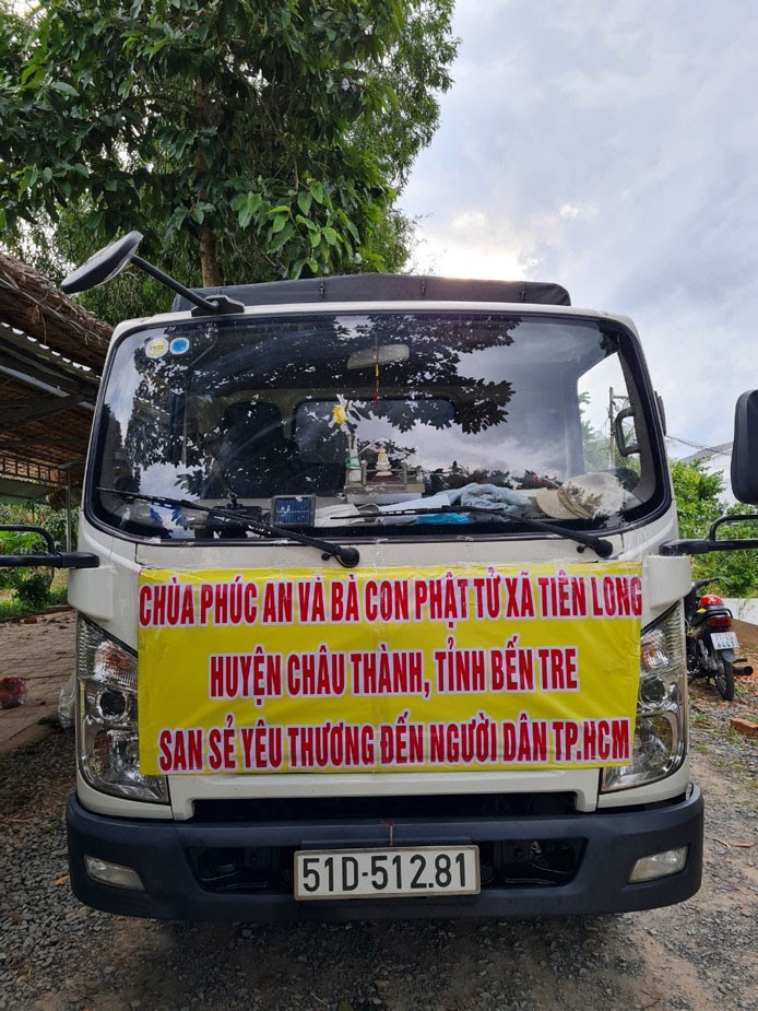 Trong những ngày qua hàng tấn xe lương thực, thực phẩm rau, củ quả, bánh tét, trái cây đặc sản sông nước Bến Tre đã được chuyển đến chùa Phúc An, xã Tiên Long, huyện Châu Thành, là nơi tiếp nhận tấm lòng vàng của bà con gửi đến, do NS.Thích nữ Như Uyên – Phó ban, Chánh Thư ký PBNG tỉnh, Phó BTS PG huyện Châu Thành và SC. Thích nữ Tâm Ngọc – Phó Thư ký ban kinh tế, tài chính PG tỉnh, thủ quỹ Trường TCPH tỉnh Bến Tre chủ trì vận động. Đây là thực phẩm “cây nhà lá vườn” do chính tay bà con trồng trọt và thu hoạch gửi đến bà con TP.HCM được ấm lòng trong những ngày khó khăn, chịu đựng, chung tay cùng đất nước phòng, chống dịch Covid-19.